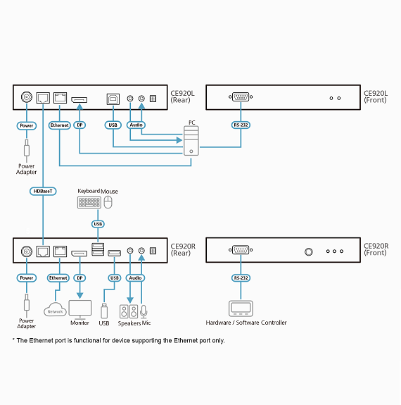 ATEN CE920 USB DisplayPort HDBaseT™ 2.0 KVM Extender משלב את טכנולוגיות ה-HDBaseT™ 2.0