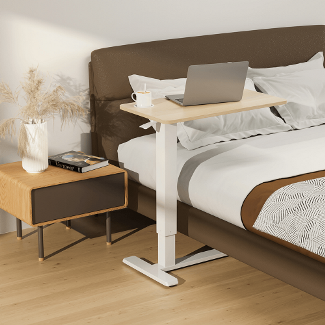 שולחן סטנד אישי למחשב נייד הידראולי ישיבה עמידה עם גלגלים נסתרים כולל כיוון גובה לומי Lumi FMT02-2 Height Adjustable 64cm-99cm Gas Spring Size 710mm x400mm Side Table Overbed Table Matte White