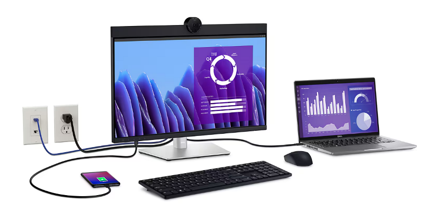 מסך מחשב לשיחות ועידה 23.8 אינץ' דל Dell P2424HEB 23.8Inch Full HD 1920x1080 60Hz Fast IPS HDMI DP RJ45 USB Video Conferencing Monitor
