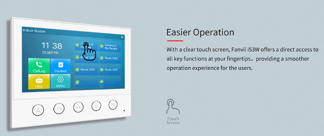 דגם תחנת SIP אלחוטית מסך מגע צבעוני שליטה 7 אינץ' 5 לחצנים פאנויל Fanvil i53W SIP Indoor Station 7Inch Touch 5 Buttons