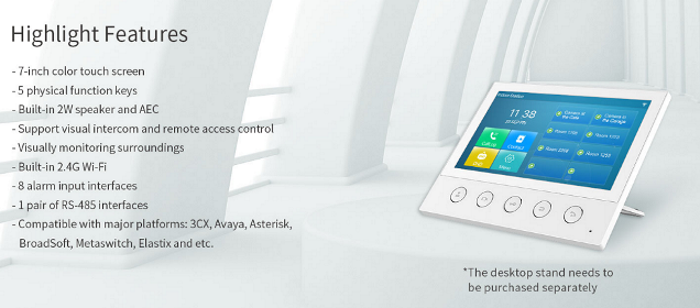 היא תחנת SIP פנימית עם מסך מגע צבעוני בגודל 7 אינץ' עם 5 לחצני פונקציה, הניתנים ליישום בתרחישים פנימיים