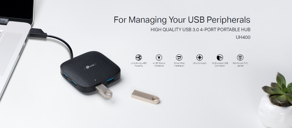 רכזת מפצל נייד 4 כניסות USB טי.פי לינק TP Link UH400 USB 3.0 4 Port Portable Hub