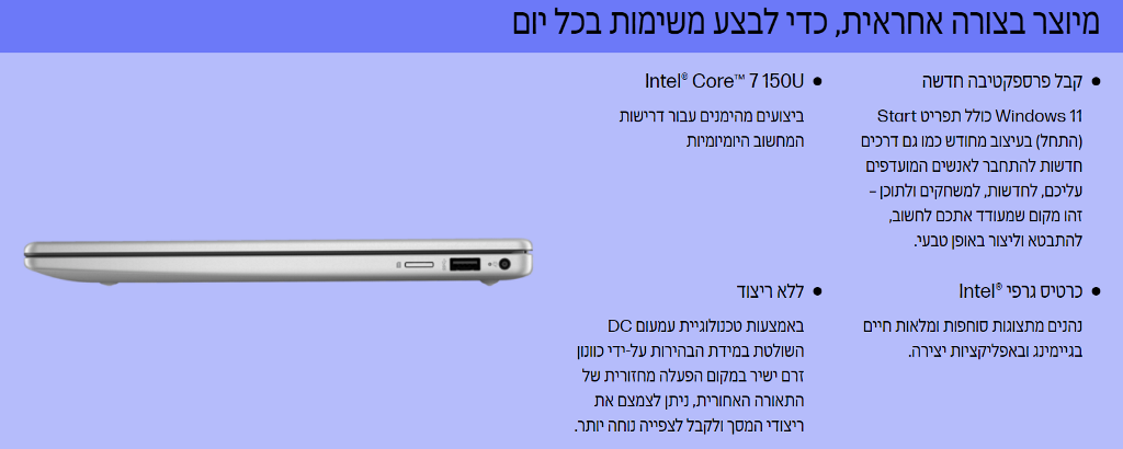 למפרט טכני מלא אודות המחשב לחצו על לשונית "מפרט טכני"
