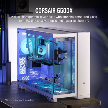 מארז מחשב לגיימרים לבן חלון צד ללא ספק קורסייר Corsair CC-9011258-WW 6500X Mid-Tower Dual Chamber PC Case Tempered Glass White 10x120mm