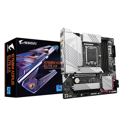 לוח-אם למעבדי אינטל דור 12/13/14 ג'יגהבייט Gigabyte B760M AORUS ELITE AX 1.3 mATX DDR5 HDMI DP USB-C