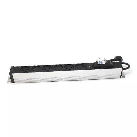 !!! פס חשמל מקצועי 6 שקעים לארון חשמל כבל 3 מטרים ונורית חיווי Power Distribution Unit (PDU) 6 Port 3 Meter 3500W Black & Silver