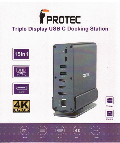 תחנת עגינה 15 ב- 1 לשלושה מסכים רשת טעינה ועוד פרוטק Protec DM301 15-in-1 2xHDMI 4K 1xDisplayPort 8K Docking Station for Three Screens Charging Network and More