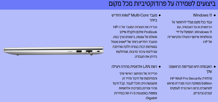 מעבד Intel® העדכני ביותר וחיי סוללה ארוכים יאפשרו לכם לעמוד במשימות תובעניות ובתאריכי יעד קשוחים.