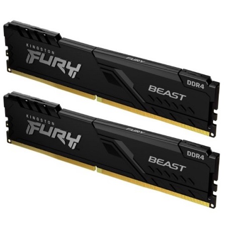 זכרון למחשב נייח קינגסטון כולל צלעות קרור מאלומיניום Kingston FURY BEAST 32GB (16GBx2) 3200MHz DDR4 CL16 KF432C16BB/16 Intel XMP
