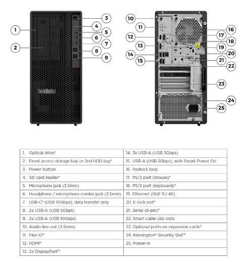 מחשב מותג נייח תחנת עבודה לגרפיקה ועריכה קורא כרטיסים אינטל דור 14 לנובו Lenovo 30FR000YIV ThinkStation P2 Tower Intel Core i7-14700K 20 Cores 33MB Cache 5.6GHz Nvidia GeForce RTX 4070 12GB 32GB DDR5 1TB NVMe 750W PSU SD Card Reader Windows 11 Pro