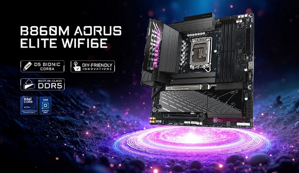 לוח-אם למעבדי אינטל אולטרה ג'יגהבייט Gigabyte B860M AORUS ELITE WIFI6E Micro-ATX LGA 1851 PCIe 5.0 HDMI DP WiFi 6E Bluetooth