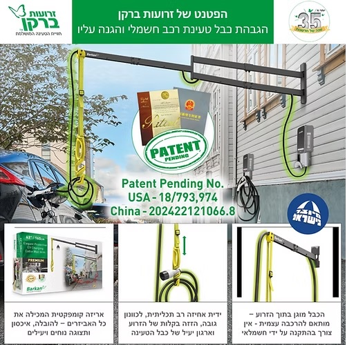 זרוע ברקן לכבל טעינת רכב חשמלי, מגינה מנפילות והתחשמלות הנובעים משימוש לא בטיחותי,