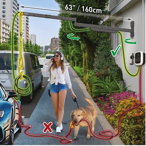 דגם EV160WM2 - זרוע ברקן 160 ס"מ, להגנת הכבל ואנשים בטעינת רכב חשמלי: