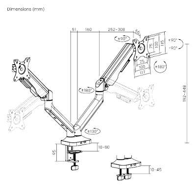 זרוע לשני מסכים שולחנית הידראולית דו מפרקית לשני מסכי מחשב נצמד לשולחן (אפשרות הברגה) לגודל מסך עד 35 אינץ' עד משקל 12 קילו כולל כיוון גובה לומי Lumi LDT94-C024 FlexPrecision Cost-Effective Gas Spring Dual Monitor Arm Black