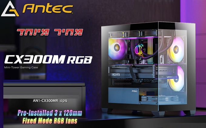 מארז גיימרים קוביה אקווריום שחור ללא ספק כוח חלון צד אנטק Antec CX300M Included Fan 3x120mm Gaming Case RGB