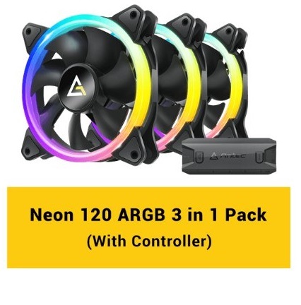 בנוסף קיט שלושה מאווררים שחורים למארז כולל תאורה ובקר אנטק Antec Neon 120 PWM ARGB 3 Pack FAN Black 3x 120mm With Controller