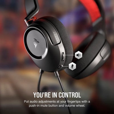 אוזניות סטריאו לגיימרים חוטיות עם מיקרופון קרבון אדום קורסאייר Corsair CA-9011384-NA HS35 v2 Multiplatform Gaming Headset — Carbon Red 3.5mm PC MAC Playstation Xbox Mobile Stereo