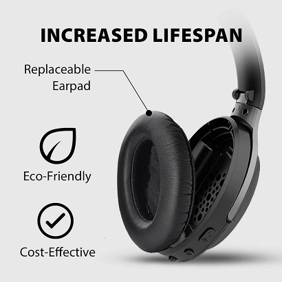 כריות אוזניים רכות ומרווחות במיוחד וקשת ראש מתכווננת מספקות נוחות יוצאת דופן שנמשכת לאורך כל היום.