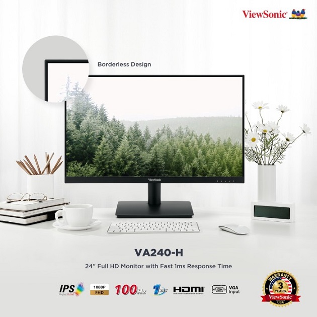 מסך מחשב 24 אינץ' ויוסוניק ViewSonic VA240-H 24 Inch FHD 100Hz IPS 1ms VGA HDMI