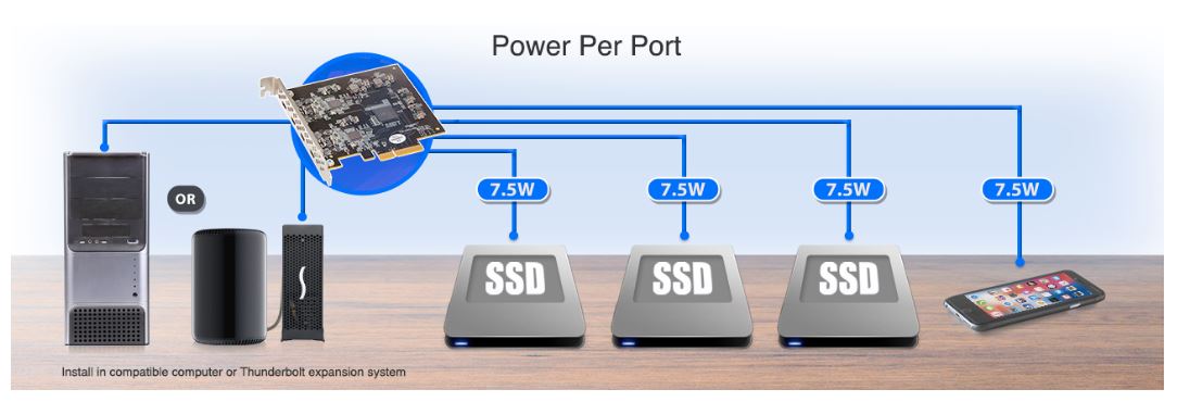 או מערכת הרחבת כרטיס Thunderbolt ל- PCIe כדי לתמוך בכונני ה- USB המהירים שלכם בביצועים מקסימליים.