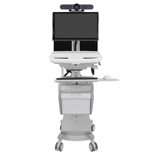 עגלה רפואית טלרפואה הידראולית ניידת-עמדת עבודה למחשב מיני 2 מסכים מקלדת ועכבר ומתקן כלים ארגוטרון Ergotron SV44-57T1-3 StyleView Telemedicine Cart, Back-to-Back Monitor, Powered, UK Mobile Telehealth Workstation