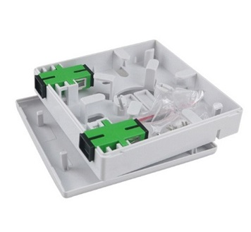 קופסא להתקנה על קיר עם מקום לשני שקעים אופטיים מסוג SC בודד או LC כפול. מסופק ללא מתאמים ופיגטיילים.