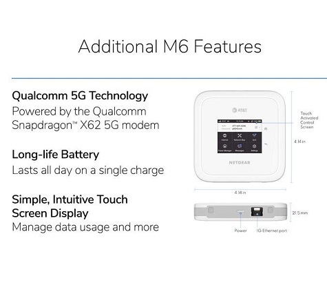 נתב סלולרי 5G כולל רשת קווית 1GbE ואלחוטי נטגיר Netgear MR6110 5G LTE Nighthawk M6 WiFi 6 Mobile Router 1GbE RJ45 USB-C
