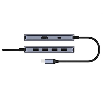 דונגל USB-C מסוג Plug-and-Play להארכת יציאות USB-C אחת ל-HDMI וארבע יציאות USB-A,