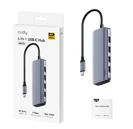 רכזת 6 ב- 1 כולל וידאו קודי Cudy UH500 1.0 6-In-1 USB-C Hub HDMI 4K 5Gbps