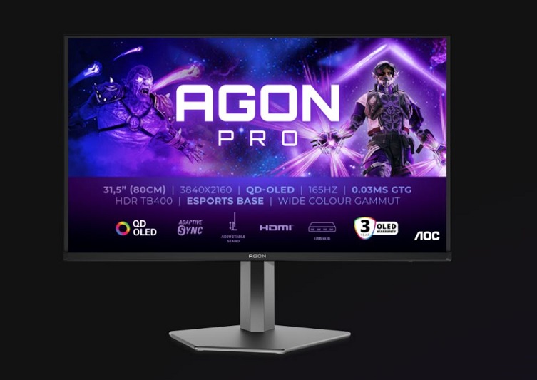 מסך מחשב לגיימרים 31.5 אינץ' כולל רכזת ורמקולים מובנים AOC AG326UD AGON Pro Gaming Monitor 31.5 Inch 4K QD-OLED 165Hz 0.03ms 2xHMDI DP USB HUB Speaker