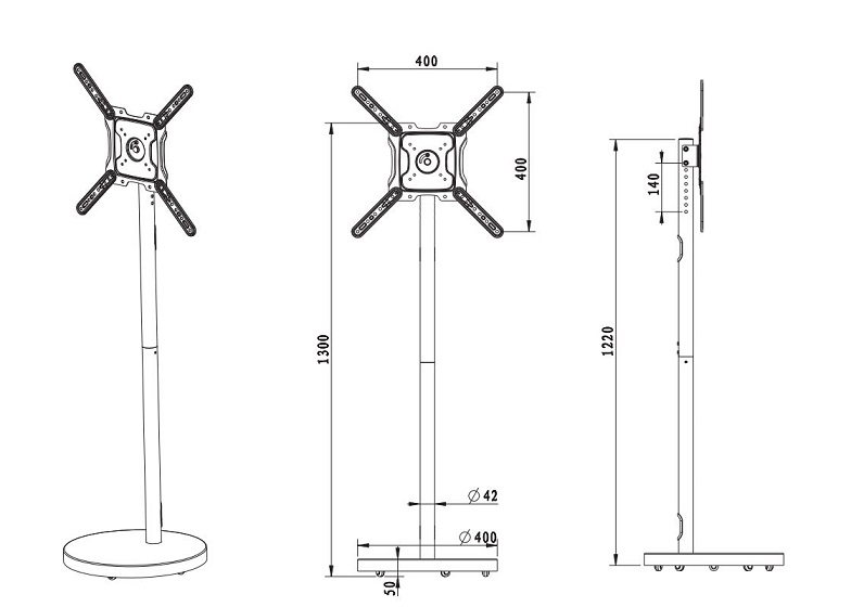 מרווח ברגים: Vesa 200x200, 200x300, 200x400, 300x300, 300x400, 400x400