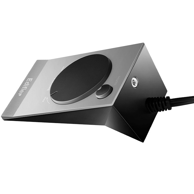 ל-Edifier M1360 יש בקרת עוצמה קווית מסוגננת עם כפתור השתקה.